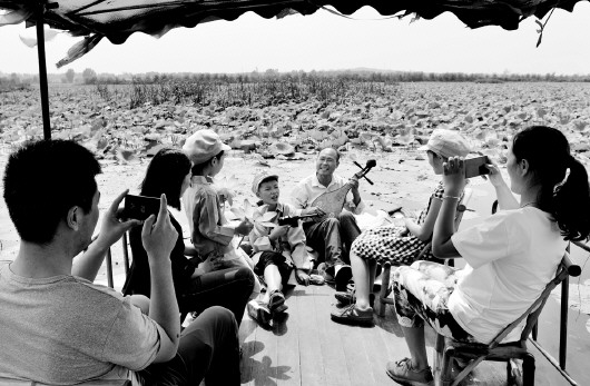 “西邊的太陽快要落山了, 微山湖上靜悄悄。彈起我心愛的土琵琶, 唱起那動人的歌謠……”9月17日,微山縣微山島鎮西張阿村荷園里,又響起《彈起我心愛的土琵琶》這熟悉的歌聲,唱歌的是西張阿村貧困戶劉德華,一曲終了,游客掌聲響起。
