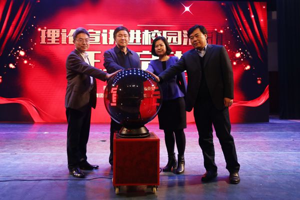 省委黨校巡視員孫占元,團省委副書記劉少華,山東社科院副院長袁紅英,省網媒集團總編輯劉加增共同按水晶球,啟動理論宣講進校園活動。
