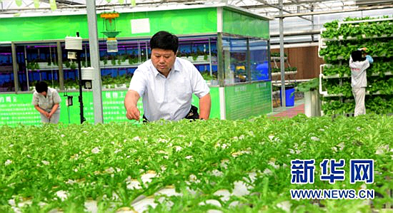 王傳喜在溫室中察看蔬菜長勢