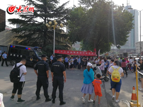 大眾網濟南6月7日訊 今天上午,2018年夏季高考大幕正式拉開。早上8點,記者從山東省實驗中學看到,雖然考生已經可以陸續進入考點,但是送考家長依舊不肯離開,考點東西兩側的人行橫道已經擠滿了前來陪考的家長。