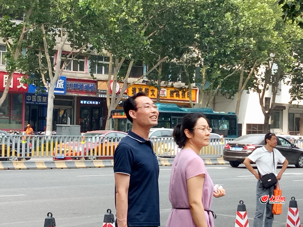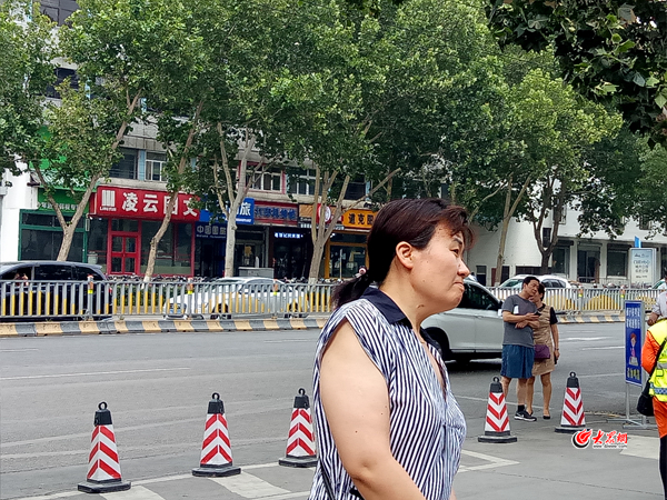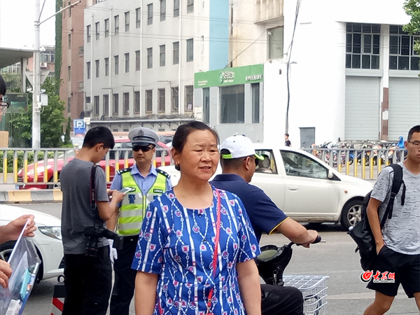“我們今天來了10個義工,主要負責協助交警疏導交通!痹缟7點,五星級義工王培海站在人行橫道線上,不停地引導著考生和家長過馬路:“不要逆向走!請遵守交通規則!背跸牡臒熍_已經比較炎熱,王培海的頭發也被汗水打濕,但他卻始終熱情飽滿,當考生及家長紛紛向王培海伸出大拇指時,他卻告訴大家,不遠處的周玉榮才是真正的公益之星。