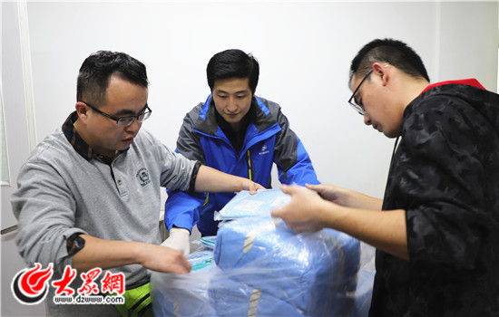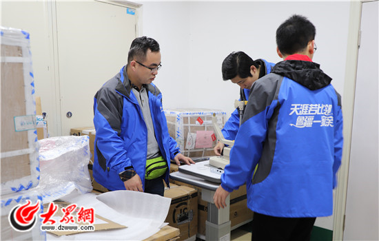 山大二院眼科專家王磊、魏超、王合雷正在清點(diǎn)物品拆裝調(diào)試設(shè)備