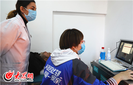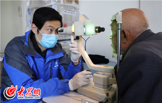 作為志愿者,棗莊市中區(qū)人民醫(yī)院眼科主任湯靜正在為患者檢查