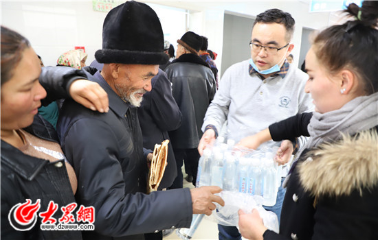 現(xiàn)場為等待篩查的患者和家屬發(fā)放馕和水等免費(fèi)午餐