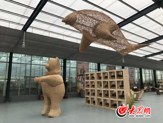 展館內(nèi),無(wú)論是美觀實(shí)用的柳編花籃、柳編桌椅,還是巨大精美的柳編工藝品,均是老區(qū)人民用雙手純手工編制。