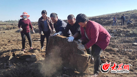 整山的過程,也是聚攏人心的過程。荒山深翻后,碎石遍山,崎嶇不平,不利于棗苗栽種,需要撿拾碎石,平整土地。賈瑞君和村黨員干部一起,帶領村民上山撿拾石塊,展開了上世紀五六十年代才有的“大會戰”。整山期間,漫山遍野,人聲鼎沸,干勁十足,熱火朝天。短短十余天,蔡村東山土地平整,成壟成畦,荒山面貌為之一新。
