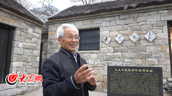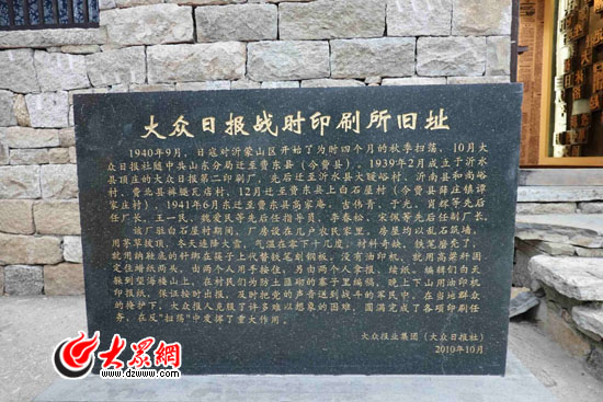 大眾網(wǎng)臨沂12月3日訊 在山清水秀的天蒙山上,有兩間修葺一新的石頭茅草屋,上面赫然寫著“大眾日?qǐng)?bào)”四個(gè)大字,這就是大眾日?qǐng)?bào)戰(zhàn)時(shí)印刷所舊址所在。在印刷所前,有一座石碑,上面記錄了那段戰(zhàn)火紛飛的光榮歷史。作為這座石碑內(nèi)容書(shū)寫的參與者,費(fèi)縣縣委黨史研究室原主任張乃軍向記者講述了他了解的大眾報(bào)人的拼搏和奉獻(xiàn)精神。