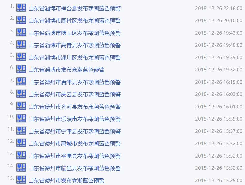 隨著寒潮來襲,山東其他城市也陸續(xù)發(fā)布了寒潮、大風(fēng)預(yù)警。截至27日上午,德州、青島、濱州、東營、煙臺(tái)、淄博等市共發(fā)布34條寒潮、大風(fēng)、道路結(jié)冰預(yù)警。