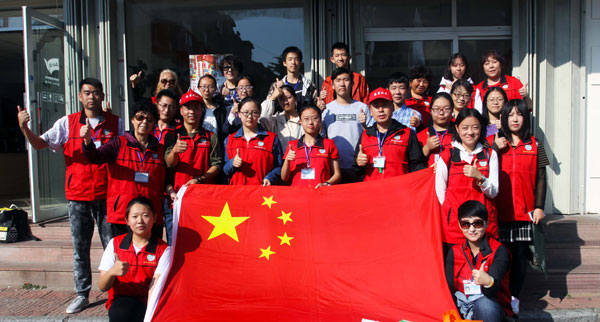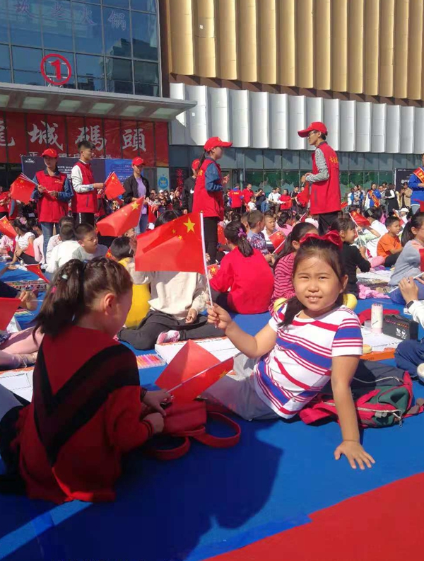青島市城陽區棘洪灘街道棘洪灘小學開展我和國旗合個影活動