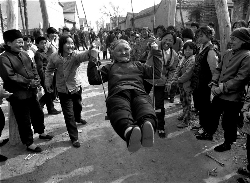 1994年,山東省濱州市舊鎮(zhèn)有清明節(jié)蕩秋千的風俗,生活富裕起來農(nóng)民又開始在村子里扎起了秋千。年邁的老人們仿佛又回到了少年時代,重溫起了女兒夢。