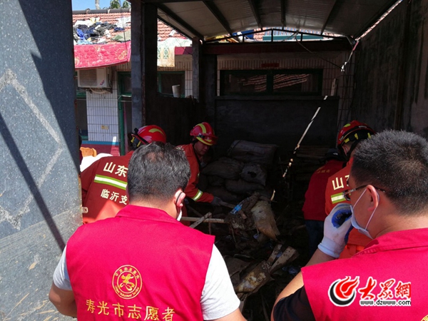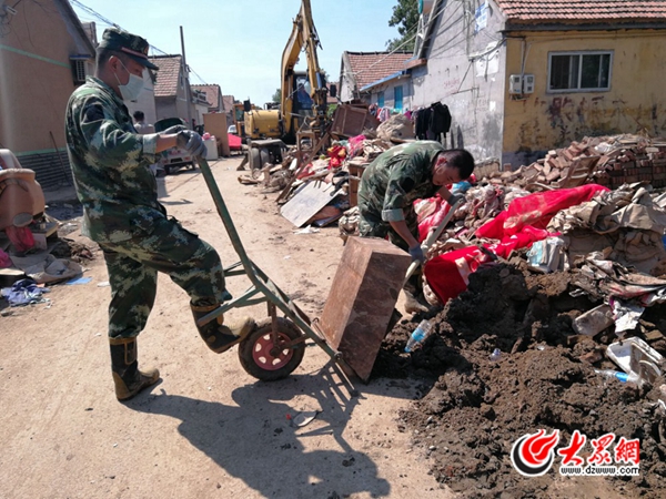 “前兩天泄洪時,洪水漫過路面進入了口子村,最深處積水有兩米多深!鄙峡阪傸h委副書記張文杰告訴記者,口子村是壽光當地受災最嚴重的村莊之一,為了防止即將到來的暴雨對口子村產生二次災害,目前來自臨沂、泰安兩地的900名消防官兵正在和500多名當地干部群眾、志愿者一起抓緊時間對村里的垃圾和淤泥進行清理。抽排積水。