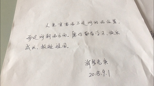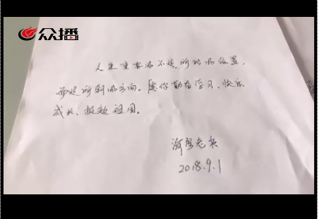 9月2日清晨,剛剛從該校撤離的濟(jì)寧消防官兵們,給同學(xué)們留信說,“人生重要的不是所站的位置,而是所朝的方向,愿你勤奮,早日成才,報(bào)效祖國……”