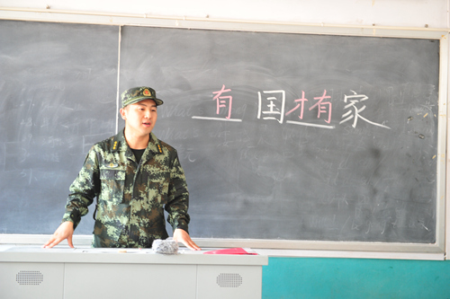 壽光市田馬中學(xué)屬于受災(zāi)較嚴(yán)重的學(xué)校,三面圍墻倒塌,學(xué)校大部分課桌椅及學(xué)習(xí)用品被泡。山東武警總隊(duì)濰坊支隊(duì)見到大眾網(wǎng)新聞報(bào)道之后,立即開展救援,在開學(xué)前夕將300套嶄新的課桌椅送到學(xué)校。濰坊武警干事王俊男給學(xué)生們提前上了開學(xué)第一課——“有國才有家”。