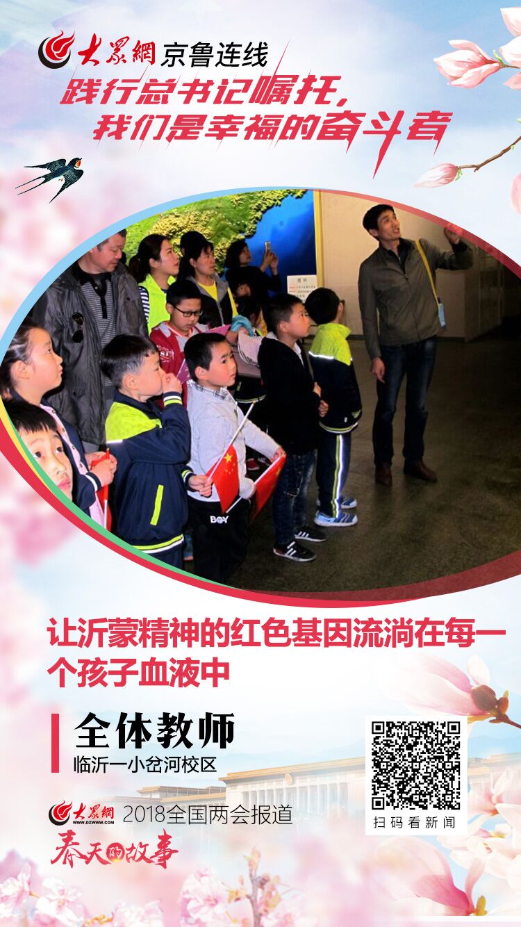 大眾網臨沂3月9日訊(記者 韋輝 林鵬)3月8日,習近平總書記參加山東代表團審議時的講話,在臨沂一小岔河校區教師中引發強烈反響。學校老師表示,要繼續踐行紅色教育理念,讓紅色基因流淌在每一個孩子的血液里。