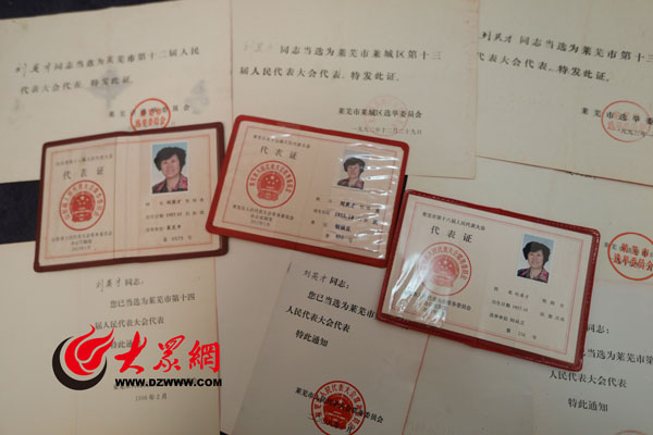 在劉英才隨身攜帶的手提袋里,有一個不起眼的牛皮紙信封。打開信封,里面是厚厚一疊證書。這是她歷次當選人大代表的證書和代表證,一張張攤開來,足足能擺滿一張書桌。