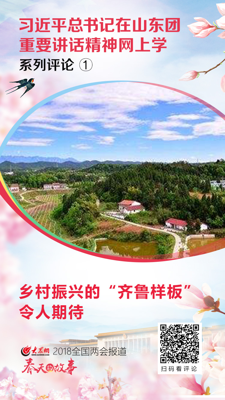 3月8日上午,習近平總書記到山東代表團參加審議并發表重要講話。今天,山東代表團代表們圍繞習近平總書記關于實施鄉村振興戰略的重要指示,就加快打造鄉村振興“齊魯樣板”,從各自不同的角度提出建議。(3月9日大眾網)