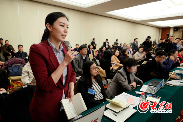 山東團(tuán)開放日,大眾網(wǎng)記者姜洋在提問。