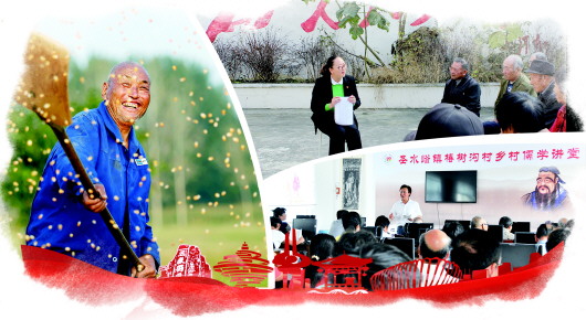 圖:郯城縣郯城街道陵坡村村民朱懷亮在晾曬收獲的玉米。(□新華社發) 圖:棗莊市千佛崖村黨支部書記李晨(左一)向村民宣講十九大精神。(□新華社發) 圖:泗水縣廣泛開展鄉村儒學講堂活動。(□資料圖)