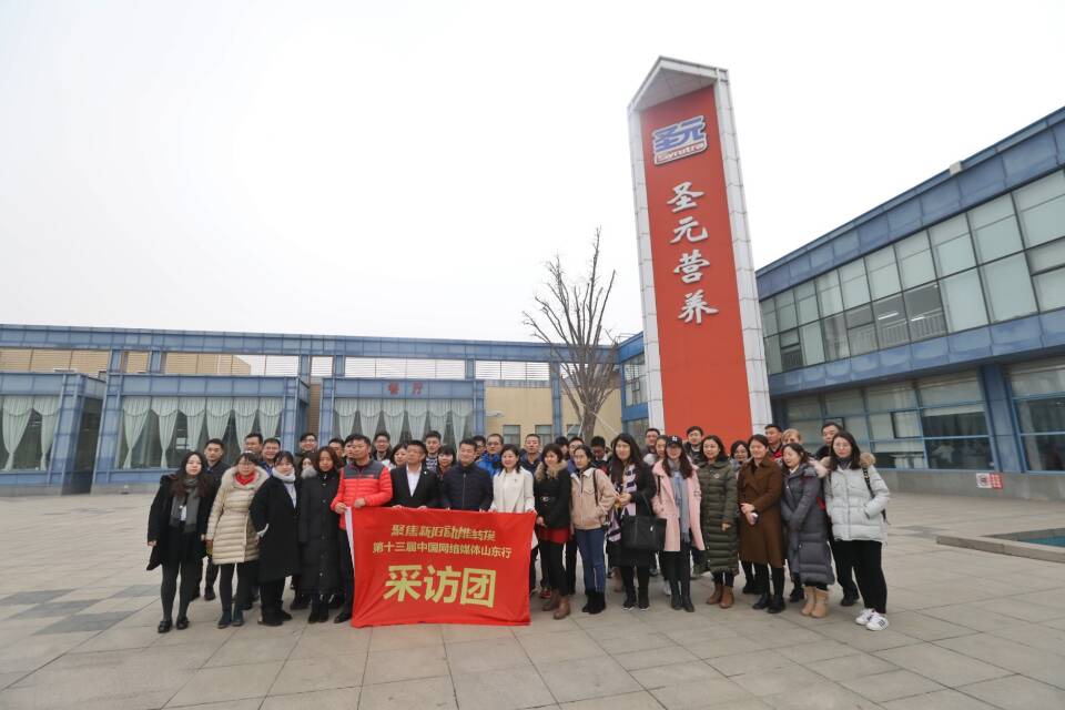 第十三屆中國網絡媒體山東行采訪團在圣元營養食品有限公司合影留念。