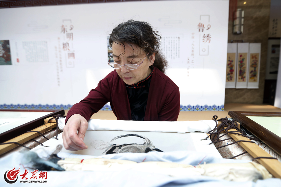 下午兩點,儒商大會非遺展區里觀展的嘉賓絡繹不絕,德州扒雞、東明糧畫、楊家埠年畫等山東傳統文化的非遺傳承人們也拿出各自絕活,將最完美的藝術品呈現在嘉賓們眼前。在各非遺攤位前,有嘉賓還不時詢問著這些藝術品是否能購買留念。
