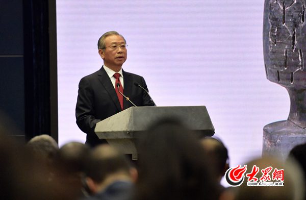 山東省委書記劉家義在向中外嘉賓推介山東。