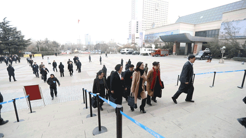 大眾網濟南1月25日訊 今天上午9時,山東省第十三屆人民代表大會第一次會議在山東會堂開幕。8時20分起,省人大代表和列席會議的政協委員陸續抵達山東會堂,開始入場。動手戳一戳大眾網記者精心準備的動圖,一睹代表委員的風采。