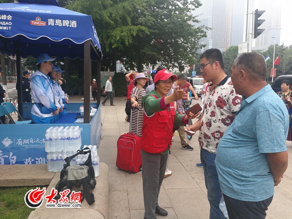 在青島市區主要路口、公交和地鐵站點、景區景點,以及峰會場館內外,小紅帽、紅馬甲、藍帳篷,構成了青島又一道靚麗的“風景線”。