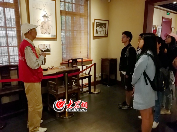 從文學創作、家族趣事,到老舍在山大的日子,在近半個小時的講解過程中,單志先用一連串的故事,把老舍先生的生平講述得栩栩如生。站一旁聆聽的大學生們不斷為其鼓掌稱贊。單志先說,像這樣的講解,他平時一天要講6場。在眾多游客當中,學生群體是他重點服務的對象,他想讓更多年輕人從老舍先生的事跡中,感受到一名知識分子的愛國情懷。為了讓學生們參與起來,他還經常自費購買書簽等小禮物,現場搞有獎問答。