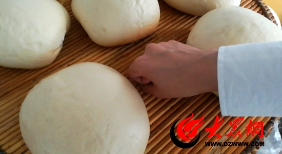 在王哥莊大饅頭協會,記者打探到了蒸饅頭不一樣的“道道”。記者首先來到操作間,在師傅們的指導下,學習和面。工作人員告訴記者:“我們這批量生產的大饅頭有兩種,一種是加雞蛋、加糖的,一種是原味的。現在工作量太大,我要去給饅頭揉型,你先練練和面。”記者隨后現學現賣,在朦朧的水汽中跟著師傅把面和勻。然后將和好后的面放進壓面機,適合做大饅頭的面就基本成型了。“把面醒個十幾分鐘,揉成型了。再發酵上半個小時,端上鍋蒸……”