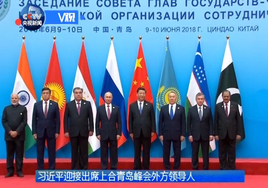 會議開始前,國家主席習近平迎接上海合作組織青島峰會外方領導人并集體合影。