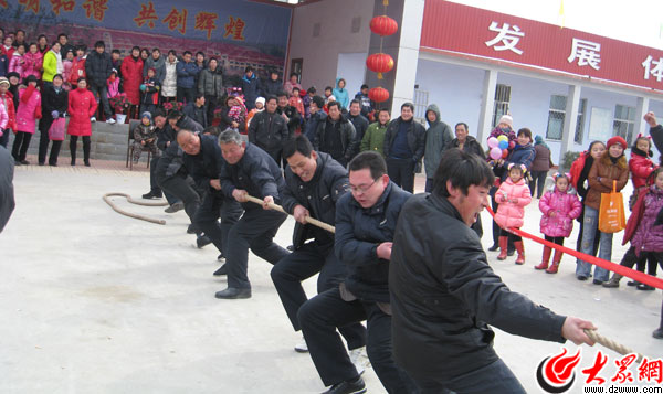 村民在郭家溝春節(jié)聯(lián)歡活動上拔河