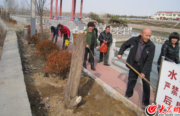 郭家溝學(xué)雷鋒志愿服務(wù)小組人員在打掃衛(wèi)生