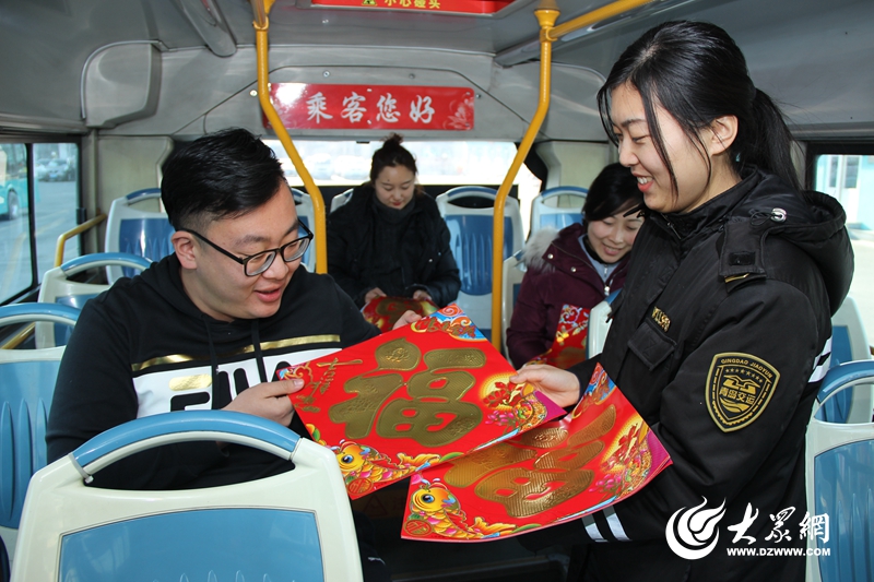 臨到終點,劉雪給乘客們發起了“福”字,車廂內洋溢著過年的喜悅。