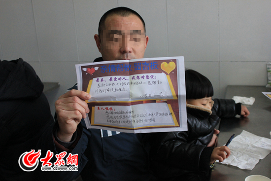 他給記者展示了監獄為這次活動準備的留言板,留言板上由服刑人員和親屬分別寫下自己想說的話。徐某寫道:感謝父母和孩子對我的期盼和關心,感謝妻子對我的等候和掛念。妻子則給他留言:感謝這次活動,和親人零距離接觸,希望他早日改造好,回歸社會回歸家庭。