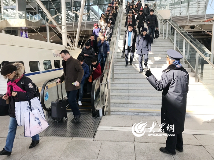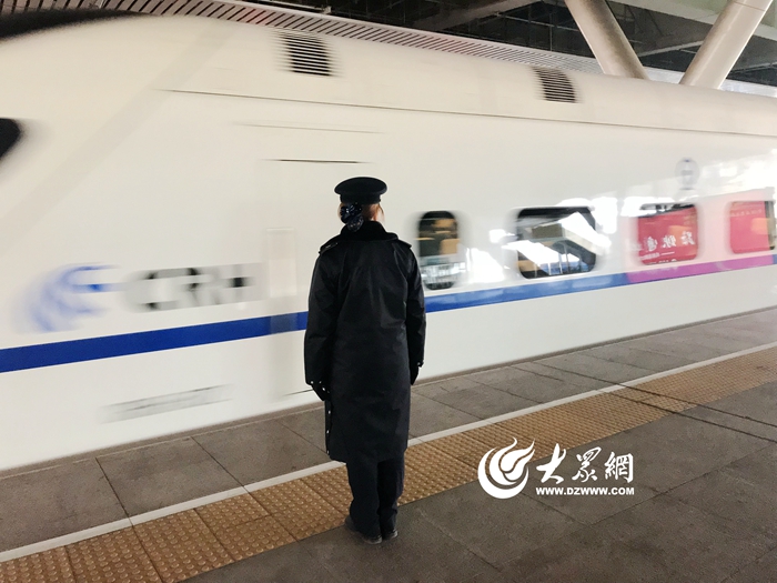 “站臺上的人員請注意,C6573次列車即將進站……”2月7日,青島火車北站北臺上的廣播重復播放著進站通知,北站到達組組長賀俊婷早已站在站臺上,準備接發列車,7級寒風呼嘯著吹過,賀俊婷迎著風,目送著列車進站并緩緩停下。