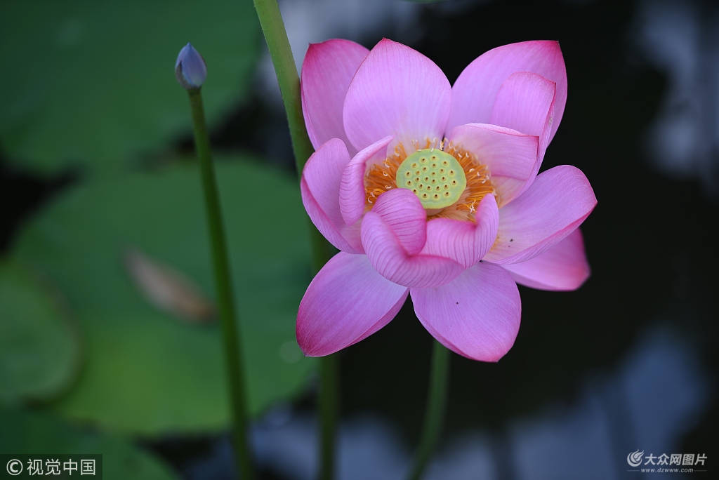 2018年7月6日,在山東臨沂市郯城縣馬頭鎮“采蓮湖”拍攝的綻放的“太空蓮”