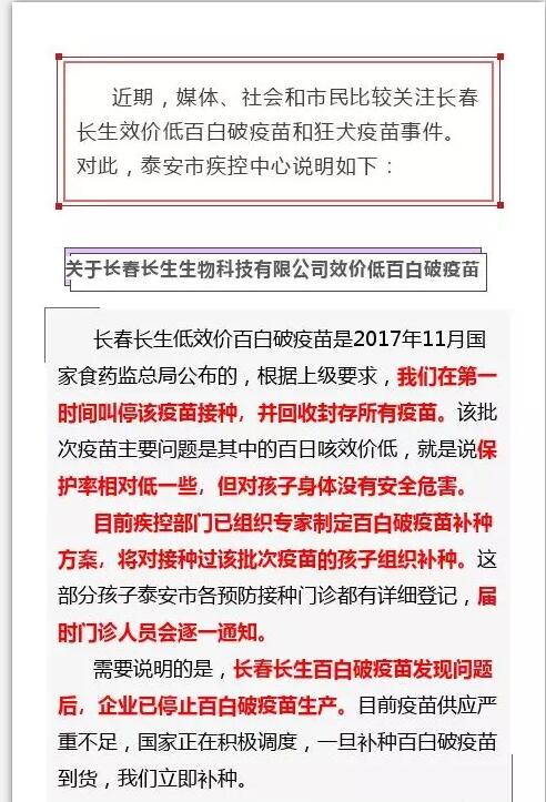 大眾網記者了解到,青島市疾控中心,臨沂市疾控中心,濰坊食品藥品監管局,德州德城區、陵城區、寧津縣疾控中心近日陸續發布公告稱,當地無涉事批次百白破疫苗流入。