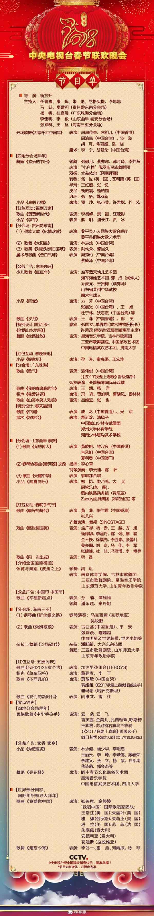 大眾網泰安2月14日訊(記者 邵蕊)一直處于保密狀態的央視2018年央視春節聯歡晚會終于揭開神秘面紗。2月14日晚,央視官方公布春晚節目單,作為本次晚會的分會場之一,泰安分會場節目也隨即曝光,分別是20點5分的開場舞表演、22點30分的歌曲《龍的傳人》《天耀中華》以及交響樂《黃河頌》,屆時山東籍明星黃曉明將攜手港澳臺知名演員鐘漢良、言承旭、夏利奧合唱曲目,而著名鋼琴演奏家李云迪、陳薩也將在泰安分會場帶來精彩合奏,而在凌晨跨年時,新年的鐘聲將在岱頂弘德樓幸福敲響,泰安分會場將與全國各地同胞一起共賀新春,祈福祖國在新的一年風調雨順、國泰民安。