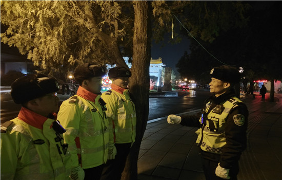 2月15日下午,泰安交警在央視春晚分會場道路執勤