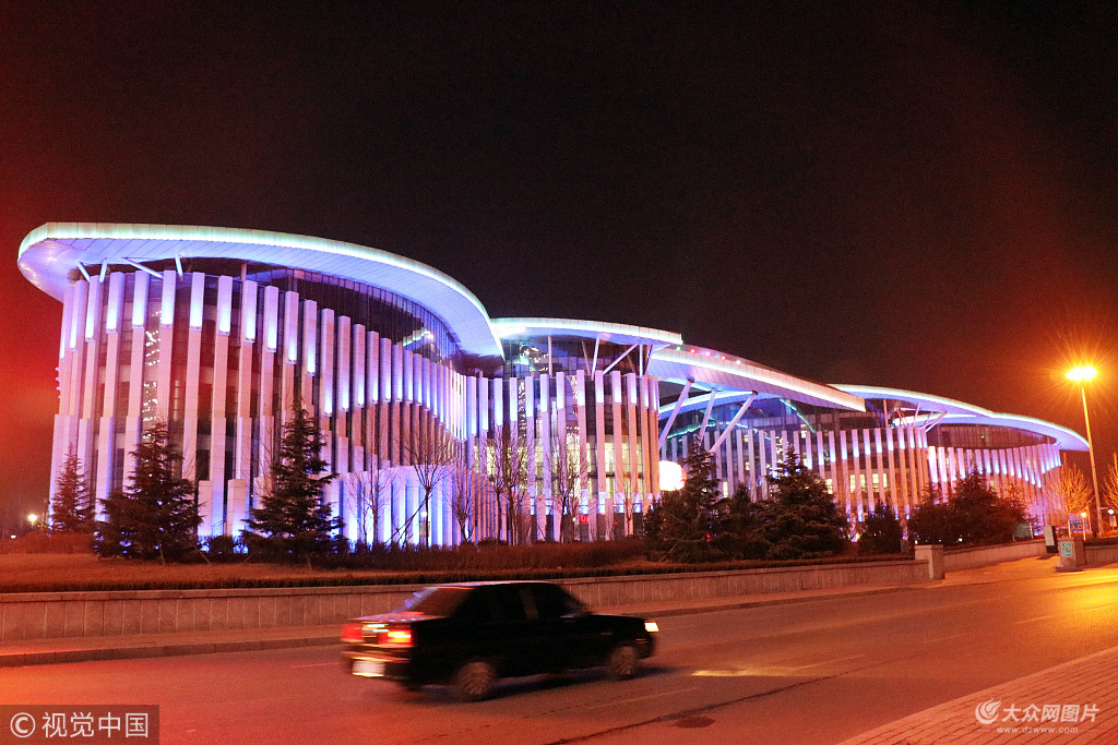 2018年2月6日,山東泰安,夜晚的泰山廣場(chǎng)燈光絢爛,美輪美奐。