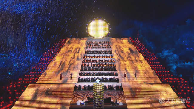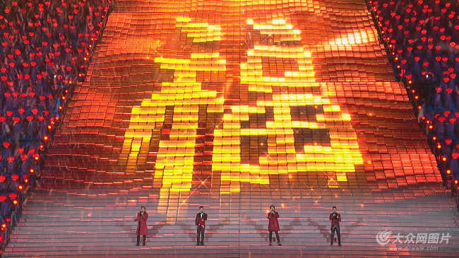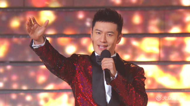 大眾網濟南2月15日訊 15日晚,在春晚山東分會場,來自內地以及香港、澳門、臺灣的青年演員黃曉明、鐘漢良、夏利奧、言承旭泰山腳下同唱《龍的傳人》。(大眾網——山東24小時客戶端記者 王磊)