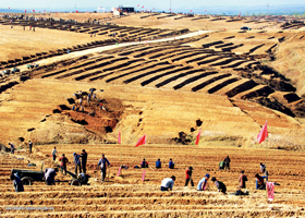 莒南縣文瞳鎮(zhèn)國家級土地整治項目區(qū)梯田改造施工現(xiàn)場