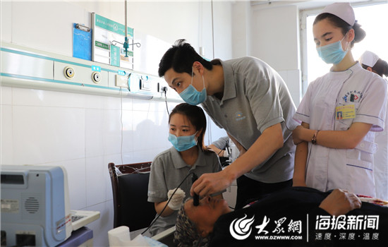 山東大學第二醫(yī)院眼科醫(yī)生王合雷對患者進行仔細篩查。(仇晶 攝)