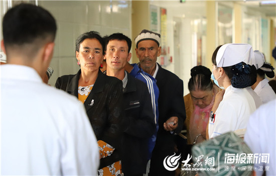 8月23日早上10時許,英吉沙縣人民醫(yī)院門診樓4樓的半層通道已經擠滿患者,看到身著印有“天涯若比鄰,魯疆一家親”字樣T恤的醫(yī)療專家們出現(xiàn),等待的人群一陣騷動,沒一會,眼科門診前就聚起了長隊。