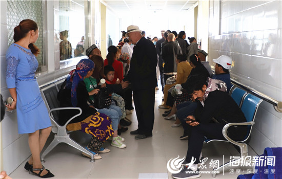 8月23日早上10時許,英吉沙縣人民醫(yī)院門診樓4樓的半層通道已經(jīng)擠滿患者,看到身著印有“天涯若比鄰,魯疆一家親”字樣T恤的醫(yī)療專家們出現(xiàn),等待的人群一陣騷動,沒一會,眼科門診前就聚起了長隊。