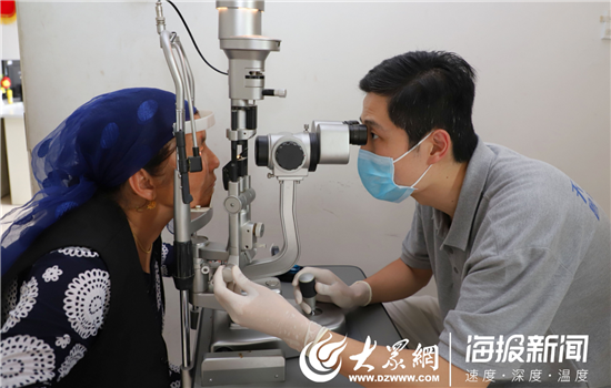 山東大學第二醫院眼科醫生魏超對當地患者進行檢查。(仇晶 攝)
