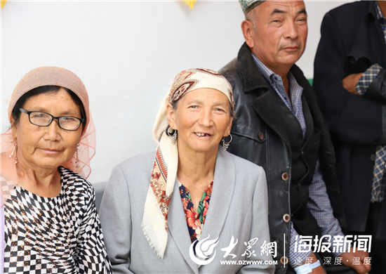 山東大學(xué)第二醫(yī)院眼科醫(yī)生魏超、王合雷與麥蓋提縣人民醫(yī)院醫(yī)生一起檢查患者。(仇晶 攝)