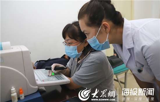 山東大學(xué)第二醫(yī)院眼科護(hù)士長劉少華對(duì)患者進(jìn)行B超檢查。(仇晶 攝)
