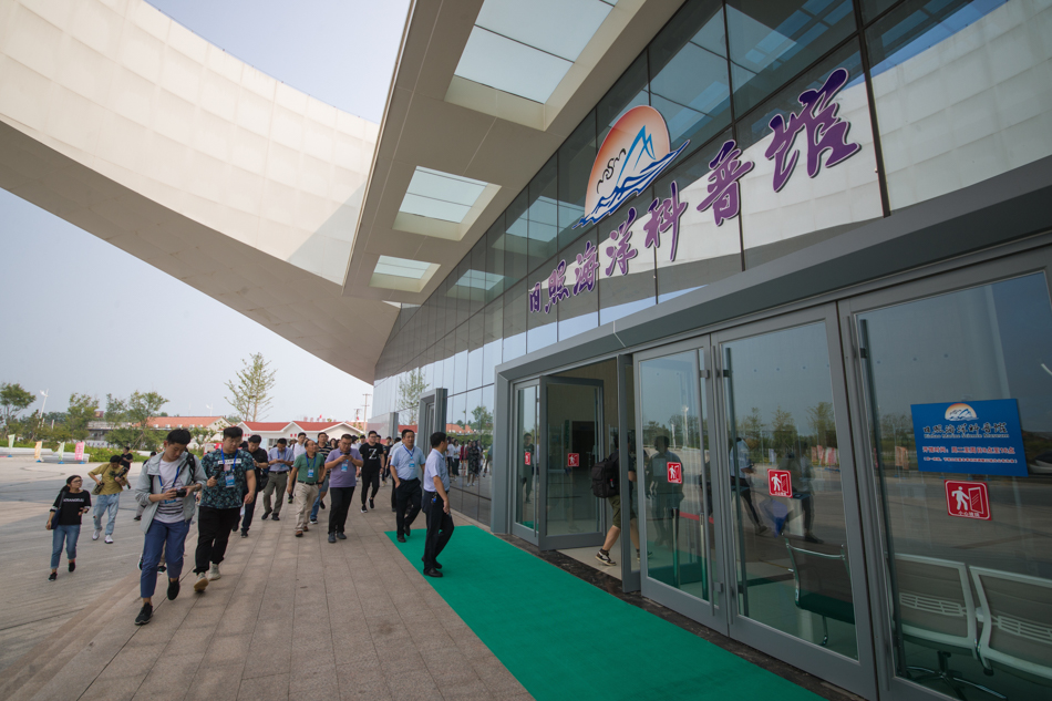 “我愛這片藍(lán)色的國(guó)土”網(wǎng)絡(luò)主題活動(dòng)采訪團(tuán)走進(jìn)日照海洋科普館。