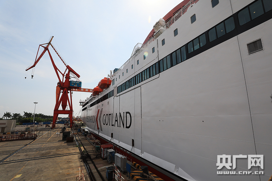 廣船國際為瑞典格特蘭航運公司建造的雙燃料高速豪華客滾船2號船。(央廣網(wǎng)記者石昊鑫攝)